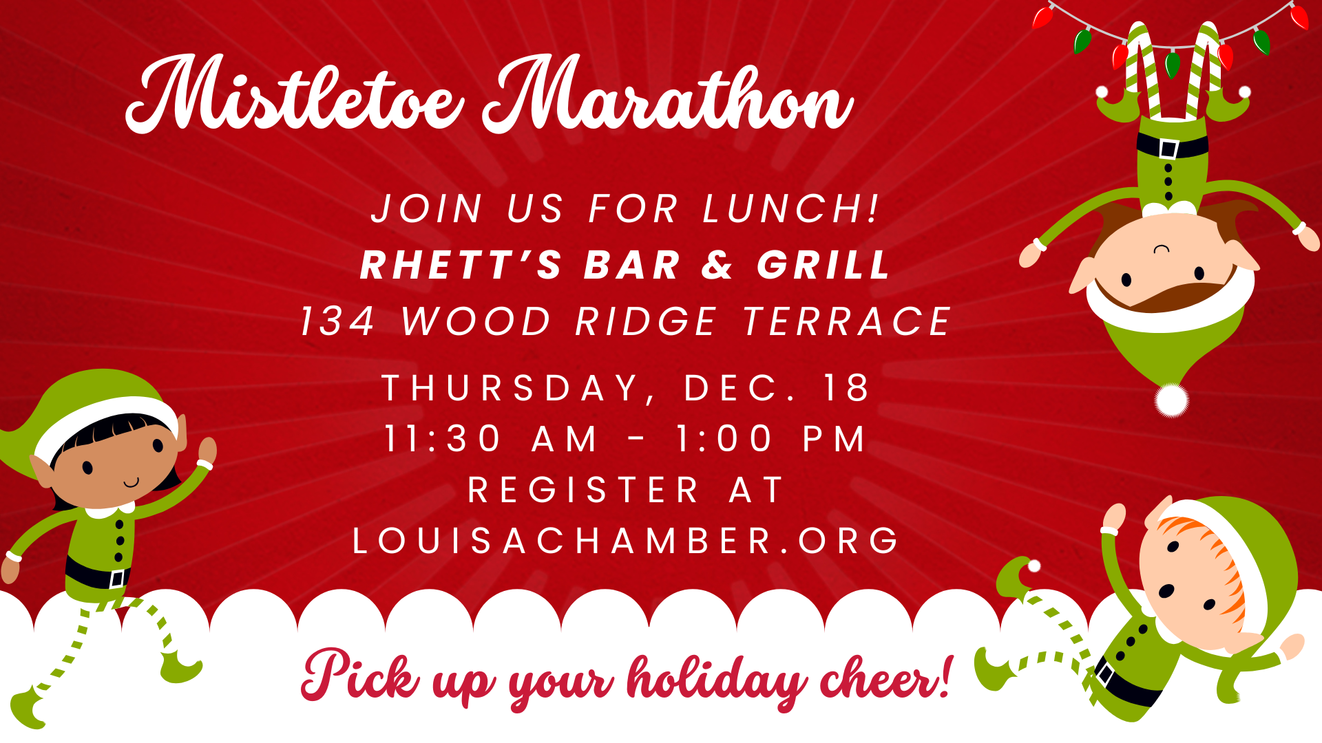 Join us at Rhett's Bar & Grill in Zion Crossroads for a festive lunch filled with networking and celebration! Connect with fellow Chamber members, share holiday cheer, and enjoy delicious options from Rhett's full menu (available for purchase). Let’s toast to the season and the connections that make Louisa thrive!