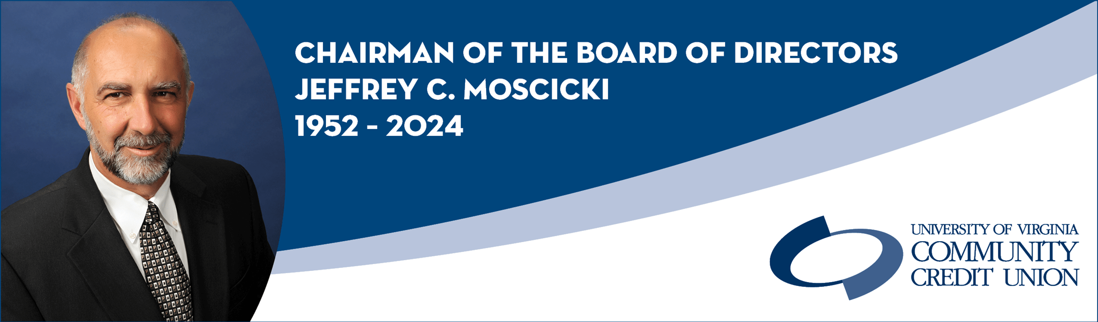 Charlottesville, Virginia, February 7 , 2024: It is with profound sadness that UVA Community Credit Union announces the sudden passing of Jeffrey C. Moscicki, Chairman of the Board of Directors, at the age of 71, on Friday, February 2, 2024.