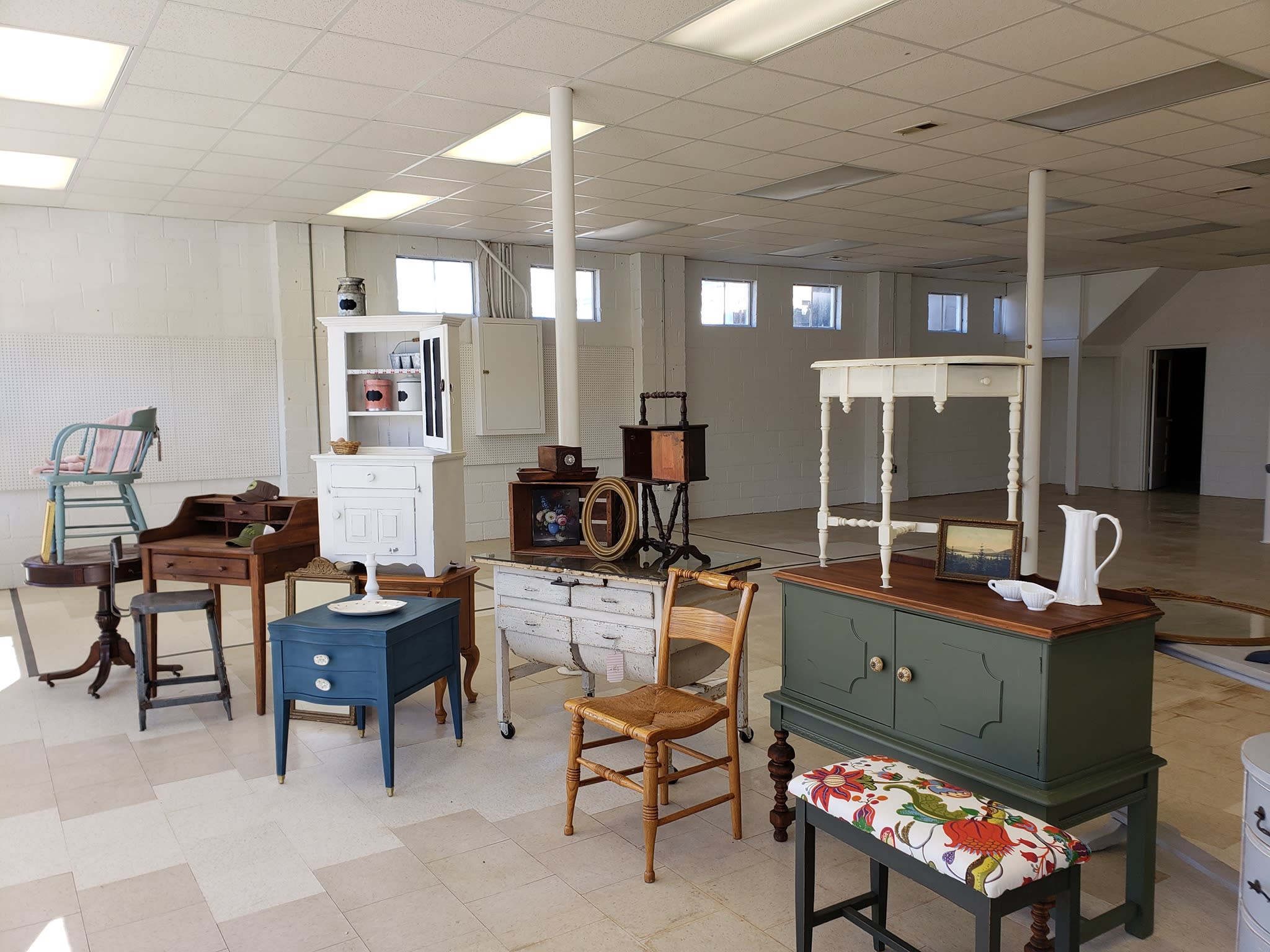 We have a variety of items...upcycled, shabby chic and antique furniture; local artisan items and gifts. We also have vendor space available to rent.